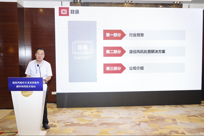 论坛以推动退役风机叶片及光伏组件无害化、资源化、高值化利用为核心目标,聚焦行业发展关键议题,设置了丰富多元的交流内容。通过政策与标准解读明确行业规范路径,在技术创新环节,众多专家带来了突破性研究成果,涵盖热解回收、物理法回收、高效拆解等关键技术领域,为破解处置难题提供了技术支撑。